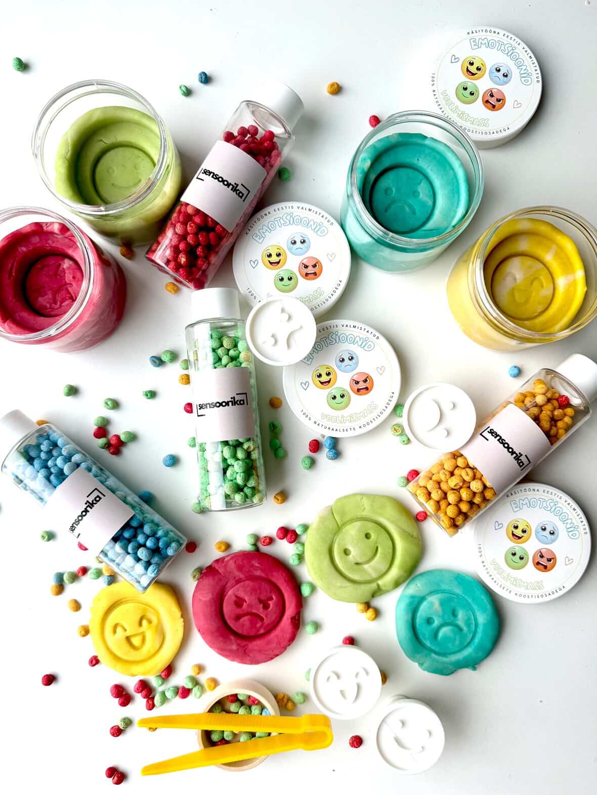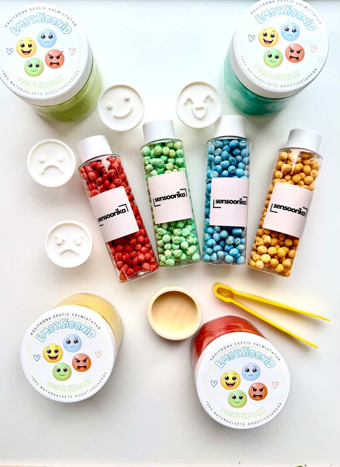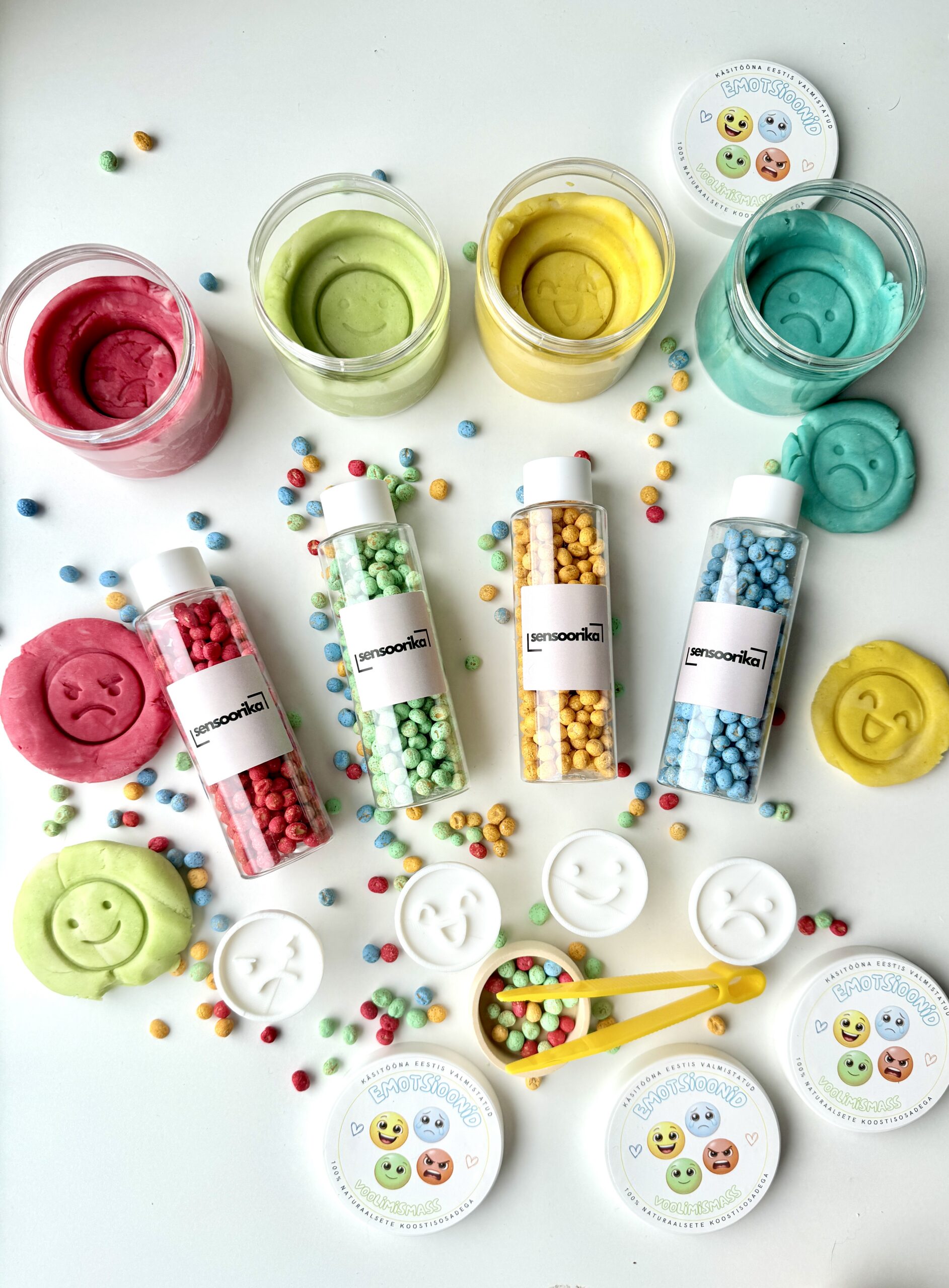 Komplekt ühendab sensoorse mängu ja loovtegevuse ning aitab lapsel: